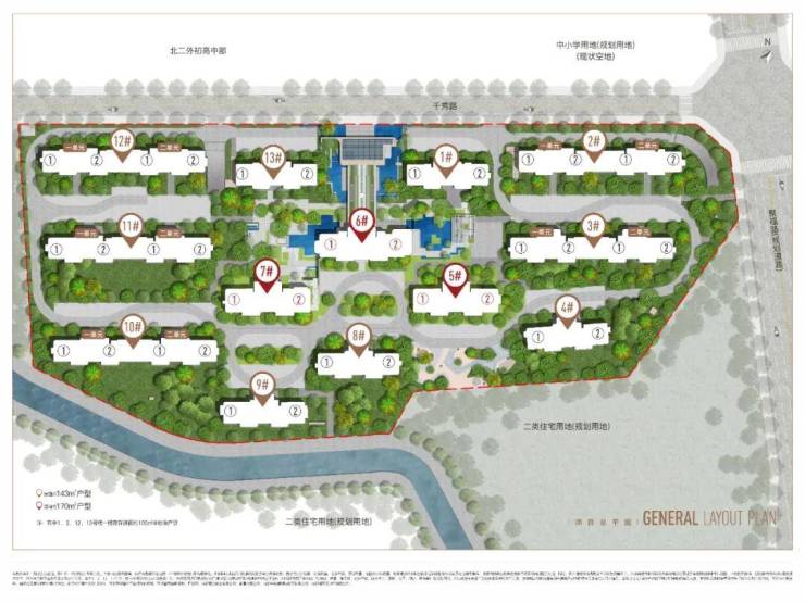 总户数:461户 梯户比:2T2户纯板式,户户独立入户 楼层情况:12F-13F 积段:约143㎡、约170㎡全精装改善四房
