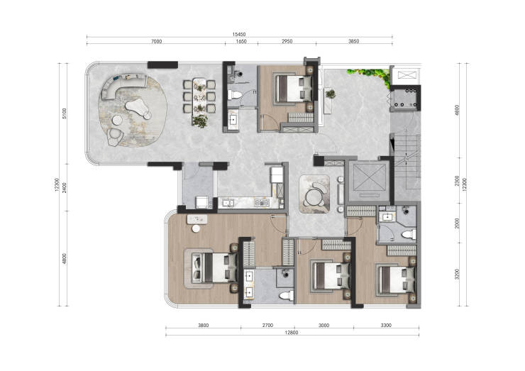 ◆四房阔尺功能布局,满足多房间需求与舒适度