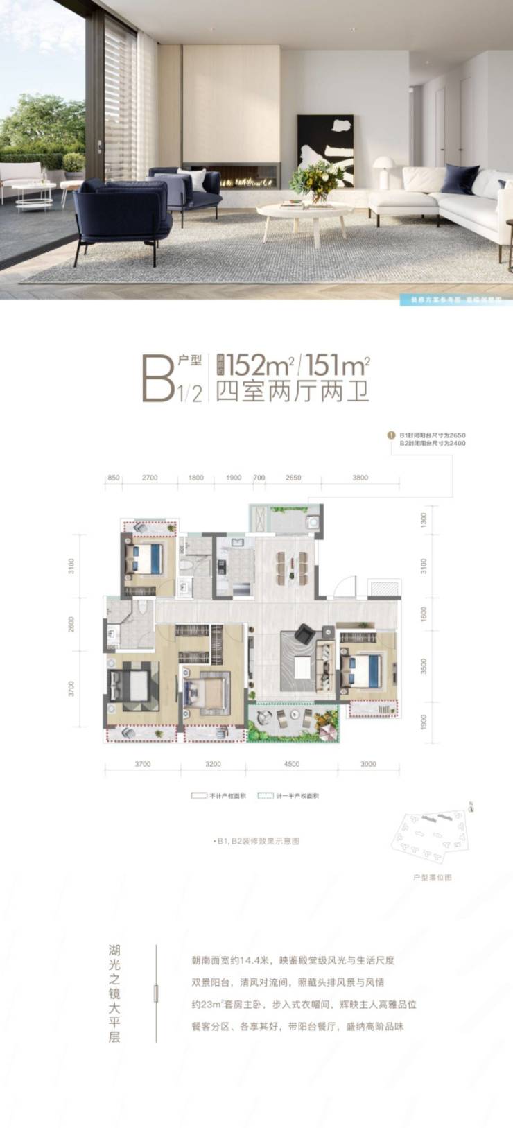 除了要求配建的小户型外,其余产品均是2T2、2T3,改善品质一览无余。