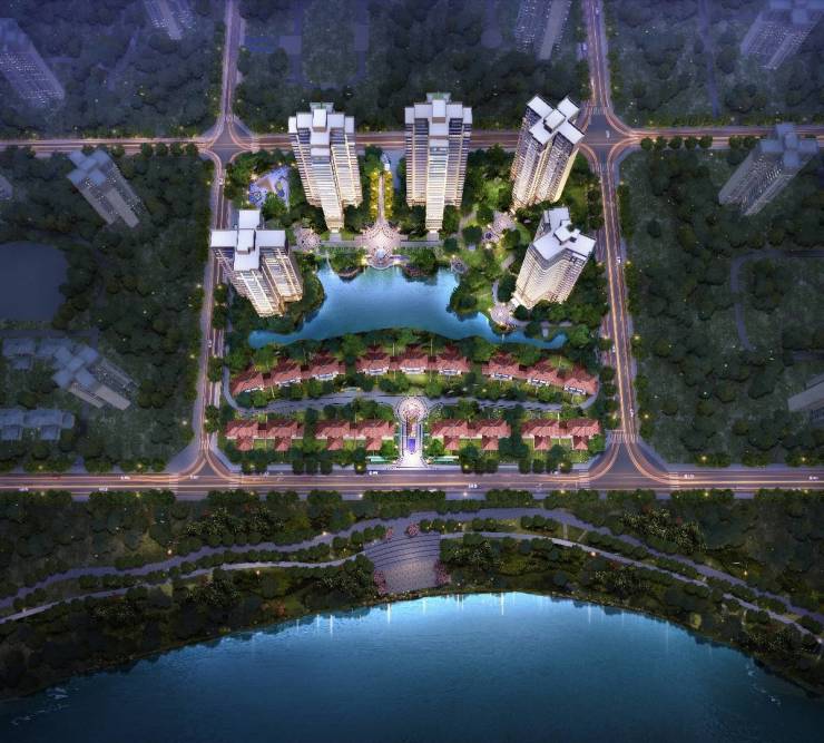 60亩土地上仅规划5栋高层+34套联排,容积率低至2.1。