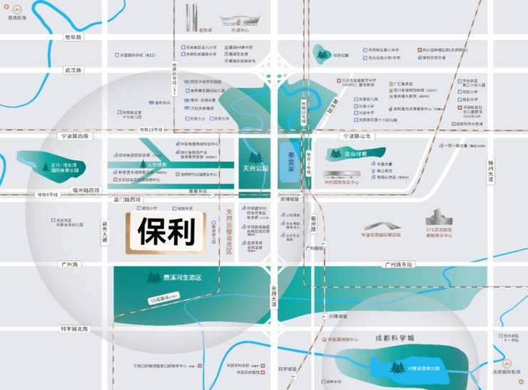轨道交通:堪称成都地铁最密集区域,8轨汇集,1、6、18、19号线已通车,眉山S5线已动工,26、16号线规划中;,地铁19号线实现总部商务区与双机场的无缝对接,划中的城市候机楼加持,全国通行高效无忧。