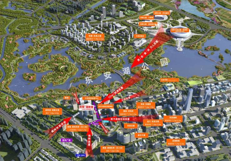 演唱会带动大量人流,东安生态旅游圈,吸附来自世界各地的游客(约5200亩东安湖+东安阁+大剧院+艺术中心等,未来城东文化旅游网红打卡地虹吸全城人潮);