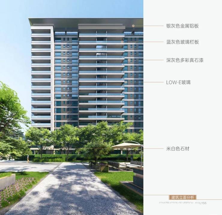 Low-E中空玻璃+铝板+石材美观立面