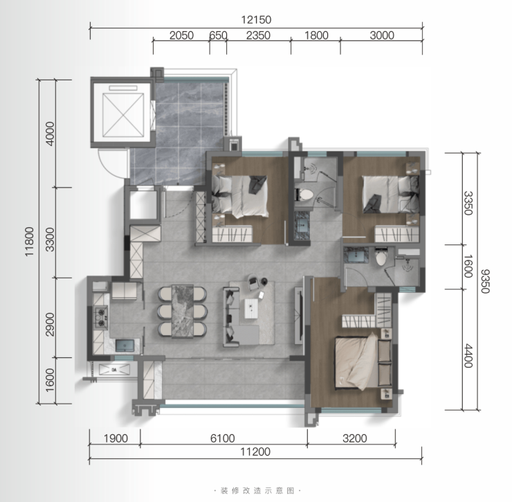 建面约110㎡套三双卫