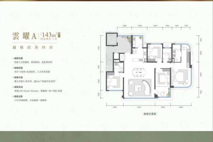 纯板式布局:全社区点阵式纯板楼设计,户户南北通透、全明采光,最大楼间距超 40 米,保证每一户的视野与私密性,270° 全景落地窗设计,实现户户观景。