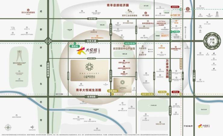 核心商业:项目自带约 21 万方成都最大青羊大悦城(预计 2026 年动工、2029 年开业),集奢品零售、精品超市、巨幕影院、网红餐饮、亲子娱乐于一体,下楼即享城市级商业配套;