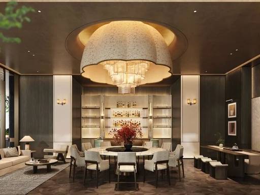 核心会所配置:约 14 米通高青雲书阁、双面采光恒温泳池、高端有氧 / 无氧健身馆、私宴厅、红酒雪茄吧、茶室、亲子活动中心;