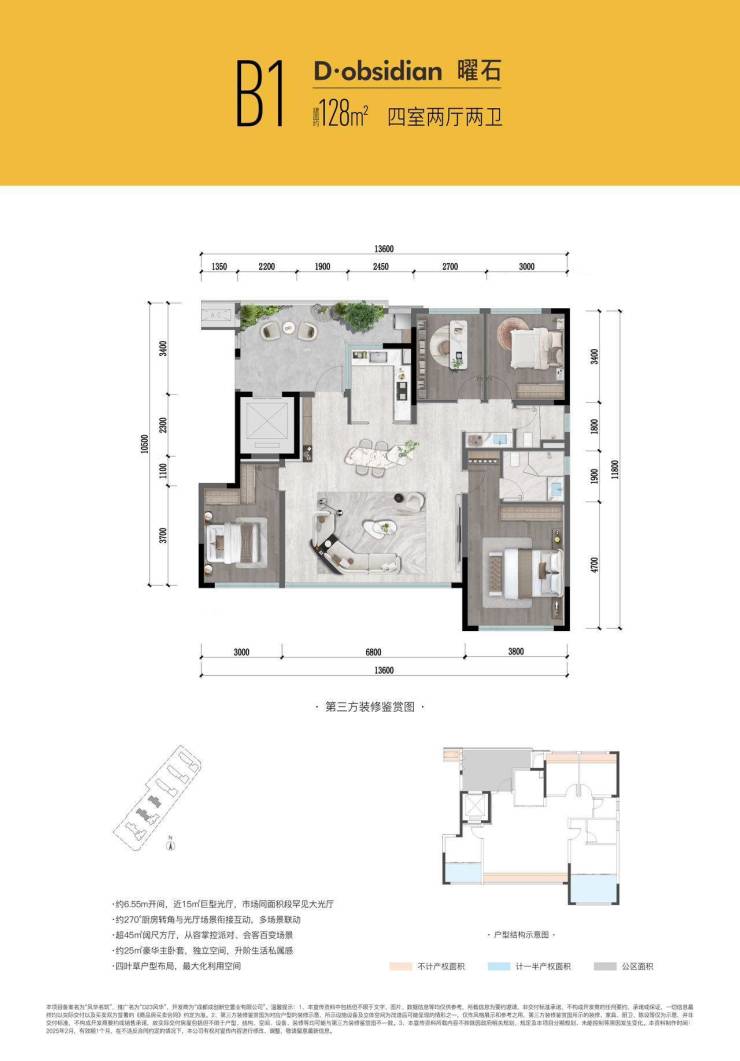 厨房270度花园环幕采光、15㎡巨型光厅、四叶草户型布局、全面屏落地玻璃