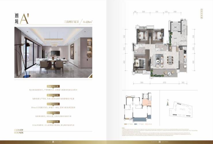 ⭐ 128㎡户型,双阳台大套三