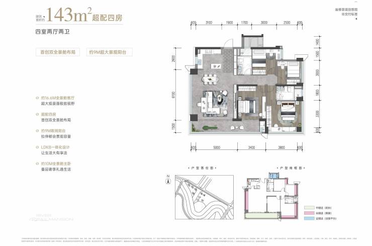 2、功能性升级:135-143平米,四房双卫起步,整体生活空间,匹配豪宅基底;