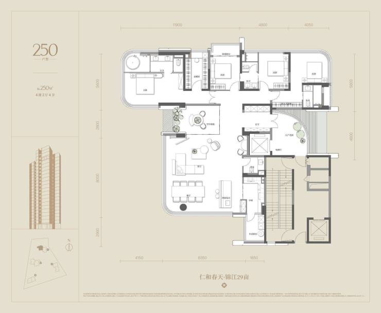 4室2厅4卫:240平、250平、260平