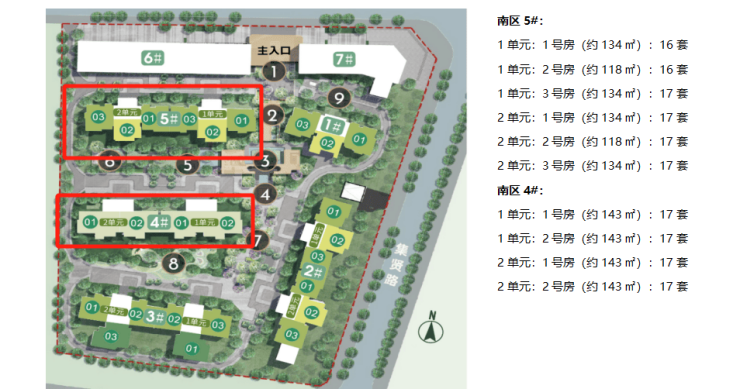 2023年12月加推 南区4#5# 共2栋4个单元 168套
