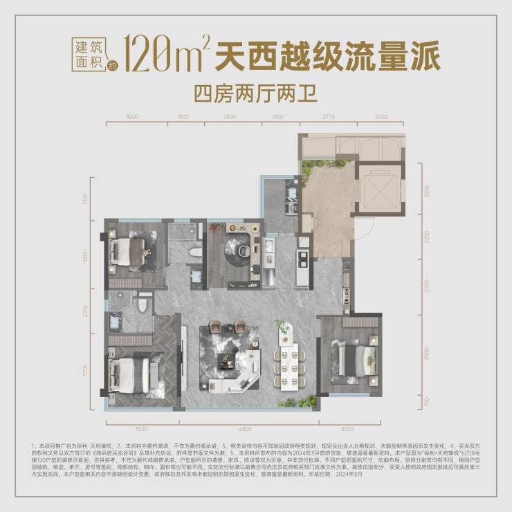 产品面积:120㎡、133㎡、143㎡、188㎡