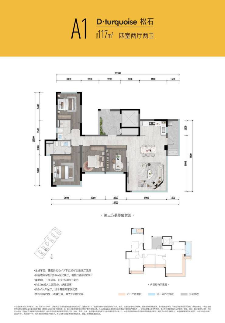 主城唯一建面120平米以下270度全景端,三面落地采光、4.3米超大生活阳台、全面屏落地玻璃(均无横向拼接)