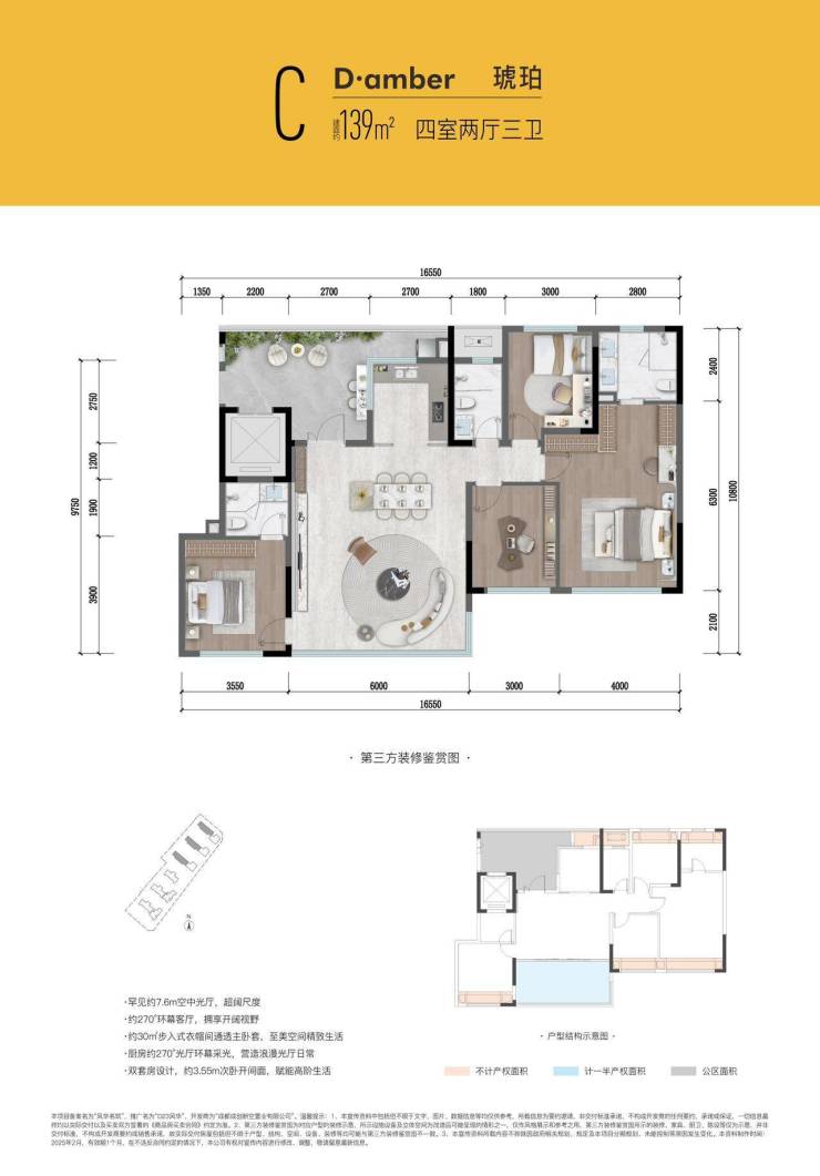 厨房270度花园环幕采光、15㎡巨型光厅、四叶草户型布局、全面屏落地玻璃