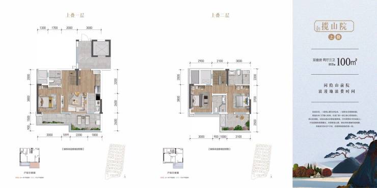 上叠约100平米,三室三卫两厅