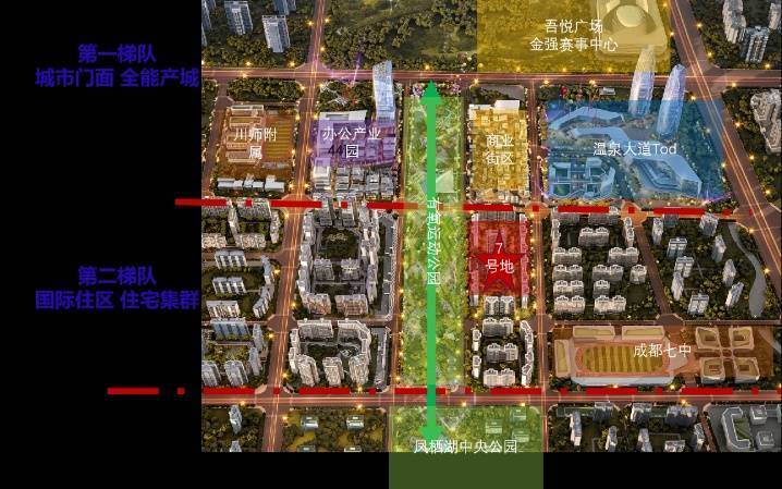 星河自有6万方的川西林盘商业街区+星河已经交付投入使用的产业写字楼+城西最大的温泉tod+温江最大的商业综合体吾悦广场和金强赛事中心。温江近几年所有发型的配套全部修在这个位置。