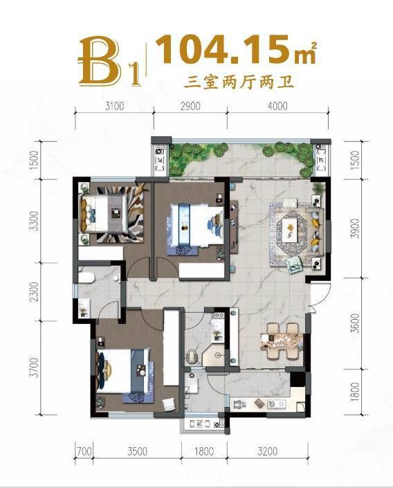梯户比:1/2/4号楼 1T2 3号楼 1T3 在售面积:101-102㎡ 交付标准:清水