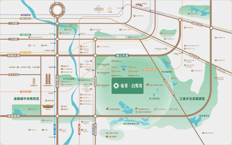 项目紧邻白鹭湾生态科技园17万㎡配套商业,开市客Costco(规划中),车行约10分钟可达58神奇空间、SKP、环球中心、招商大魔方、银泰中心in99、华熙528等,坐拥成都高端生活商圈。