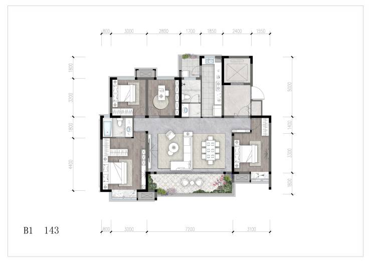 面积段:小高层127-143-152㎡,叠墅180-210-306㎡