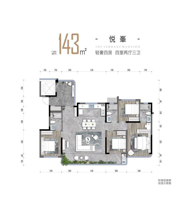 洋房143㎡(套四两厅三卫,双套房)