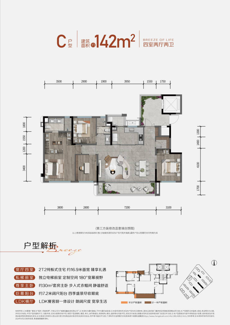 户型:109㎡套三双卫、125-142㎡套四双卫、169㎡套四三卫