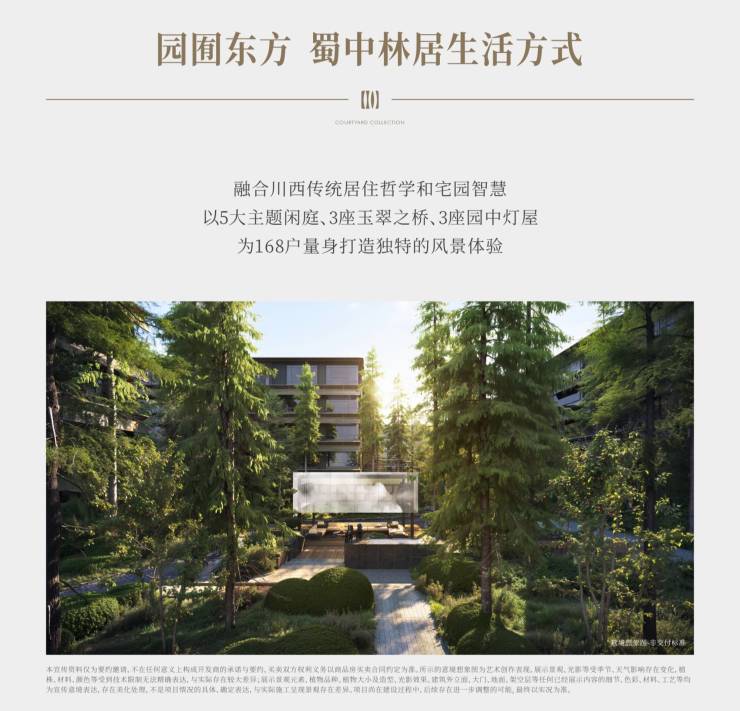 🍃 产品亮点:传承川西院落精神与东方生活美学,“四合院”式布局,户户皆为“树景房”,引景入室、居室亦园林