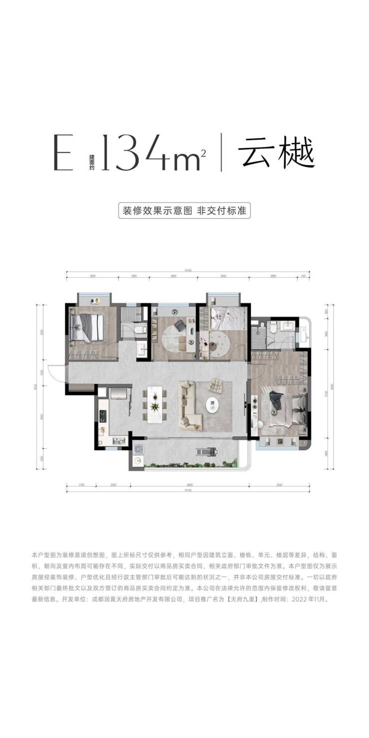 主力户型:建面约108-115㎡江景三房 / 134㎡宽境四房