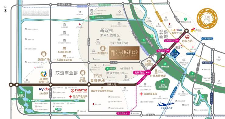 3公里:双流万达、优品道广场、海滨城、奥特莱斯