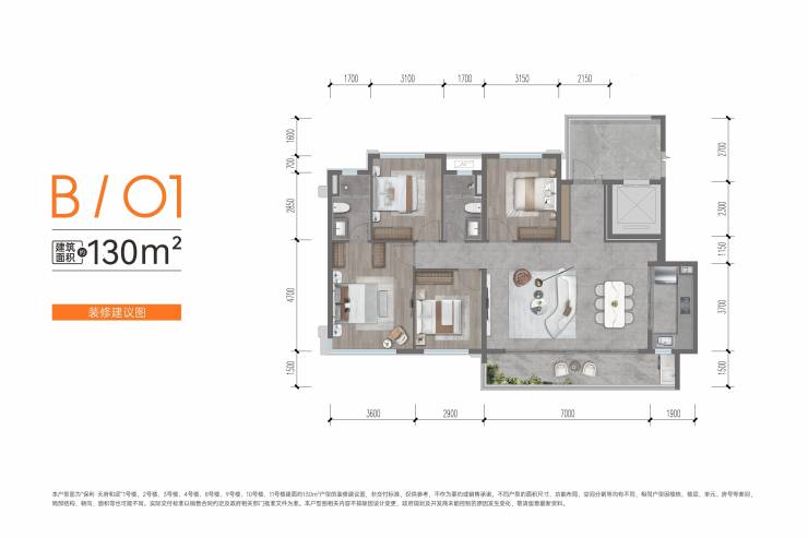 天府和颂二期首开的经典四房产品:建面约123㎡板式洋房。