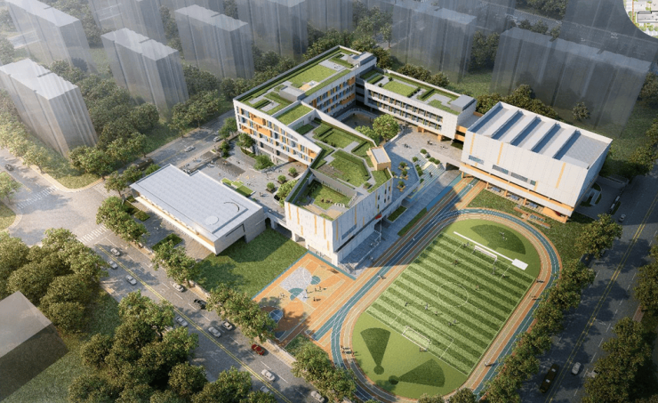 ▲小学效果图· 项目旁有规划的小学、幼儿园用地,周边还有多块教育用地。