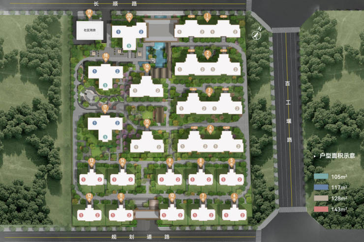 • 项目规模:总占地面积约45亩,容积率1.5,建筑密度23%,绿地率30%。