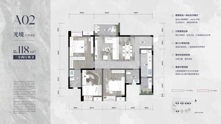 建面约118㎡户型创意样板间