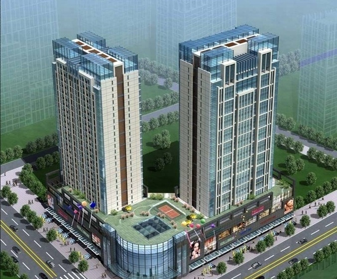 总用地面积13335.7㎡,沿中央大道和北侧分别设置了一幢26层高的写字楼,设置四层商业裙房将两座楼紧密联系,整体建筑呈“反L”形,对外形成金融商业中心,对内自然围合成私密性较强的中心花园。总建筑面积63294.16㎡,其中计容积率建筑面积56009.04㎡:不计容积率建筑面积7285.12㎡(含地下室建筑面积7054.75㎡,配套建筑面积230.37㎡)。项目地点交通便利,形成良好的景观空间. 根据宏观房地产市场和福鼎市写字楼需求特征,本项目优、劣势等的分析,本项目定位为集“购物、娱乐、休闲、办公”于一体的繁华金融商业中心。产品结构设计成二幢26层功能齐全的高层写字楼,四层的商业裙房将两座楼紧密联系,以“多元共享和城市综合体”为基本设计理念,创造出多元化的建筑空间,满足各种人群多样化的生活模式和需求,避免产品的同质化带来的市场风险。同时注重小区景观环境和品位的塑造,避免商业人流和写字楼人流的交叉干扰,因此市场前景看好。
