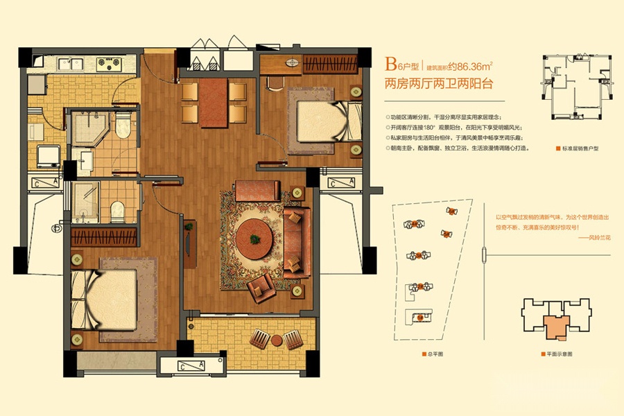 2室2厅2卫-B6户型