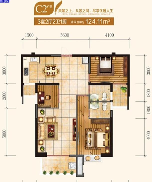 89万/套 建面124.11m²