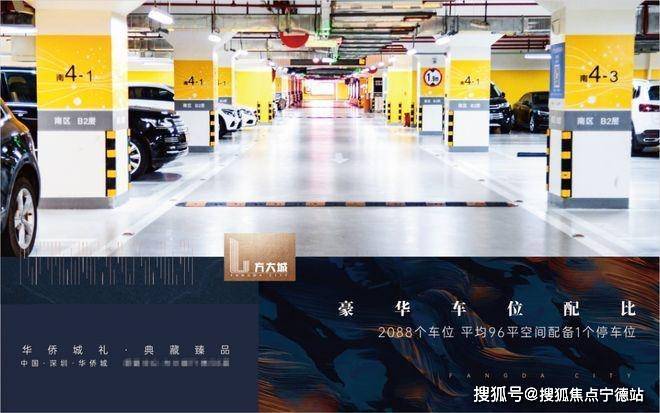 96㎡:1 阔绰停车 地下共四层停车空间,2088个车位,平均每96㎡办公面积配1个停车位,超阔绰车位配比。