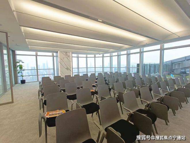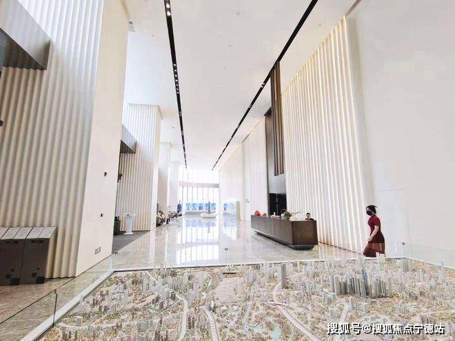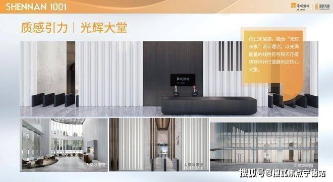 约11米层高,融合“光辉未来”设计理念,以充满能量的线性符号和天花模块群设计,打造核心大堂气派形象。