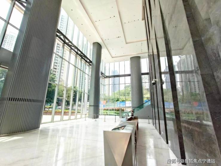 T2设置独特南北双首层大堂,其中南大堂约17.35米挑高,企业展示形象极佳;北大堂高约9米,为大客户专属空间。