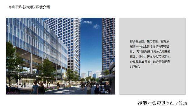占地约40万㎡,总建面133.5万㎡,项目涵盖研发、办公、公寓、酒店、商业等多种业态,南山云科技大厦更是项目当中翘楚,其外观设计新颖而前瞻,周边配套齐全,是南山区域内最具创新活力的品质标杆写字楼。