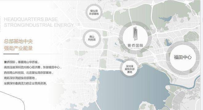 深圳城市核心区,侨香路总部商务产业带,前海、后海、超总湾、福田CBD环绕。
