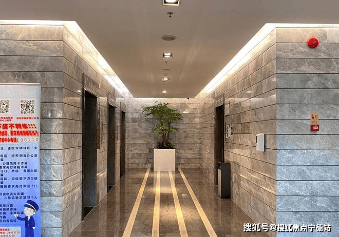 形象优越:9.4米超高挑空双大堂,大理石材装修,楼体整体以真空玻璃及铝合金装饰包裹;