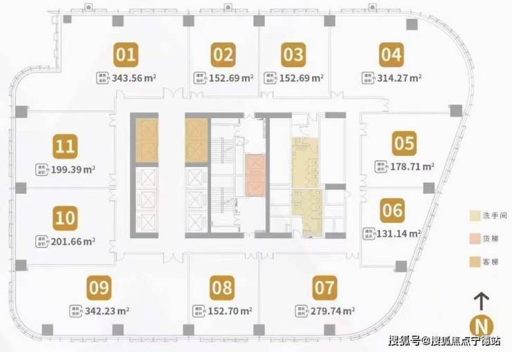 层高:标准层高4.2米,超高区(48F以上)4.5米