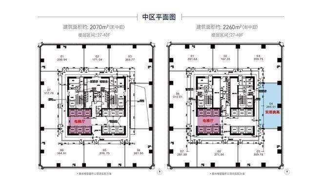 其中B2-L4层为商业,面积约1.2万平方米;L5-L55层为写字楼,面积约10.3万平方米。
