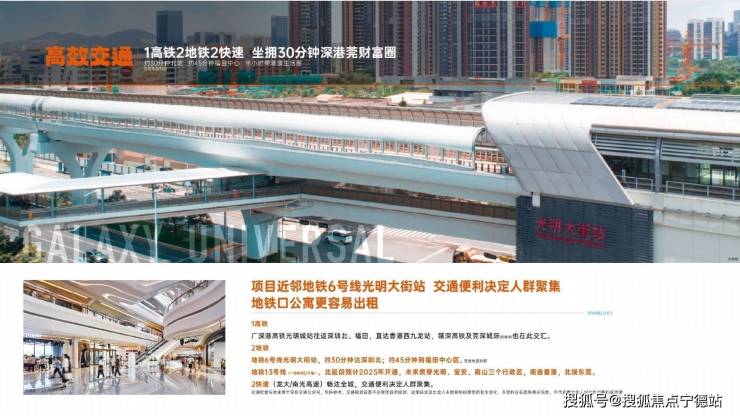 地铁6号线光明大街站,约30分钟达深圳北;约45分钟到福田中心区;
