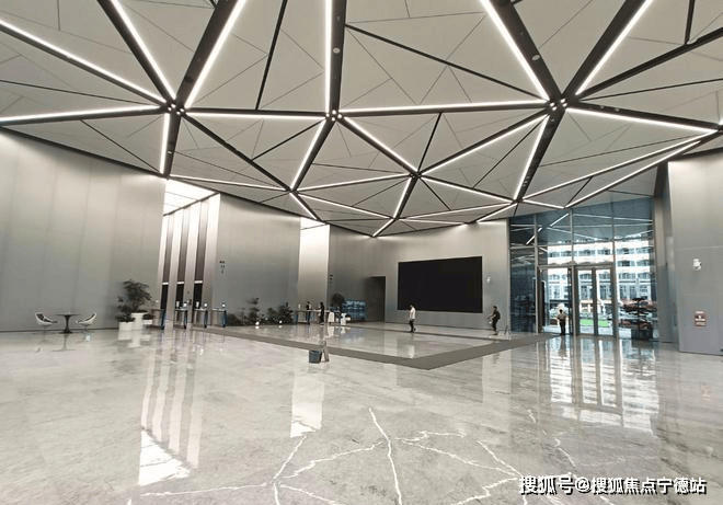 大堂设计:顶部预设展览挂钩、科技感空间设计、层高约10/6m、最大面宽约100m