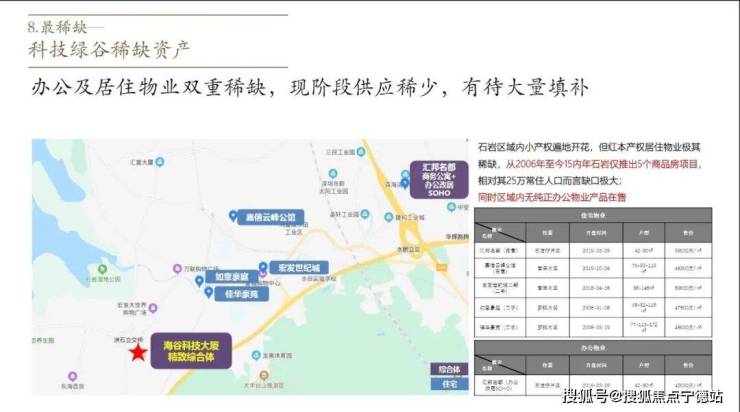 【国家高新区】:石岩南片区已被国家纳入高新区拓展区域,以智能研发为支柱产业,片区近 360 万 ㎡ 产业空间,将新增 400 亿的产出