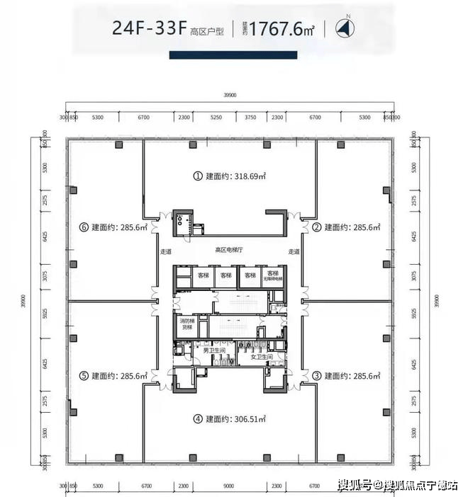 标准层面积:1700㎡