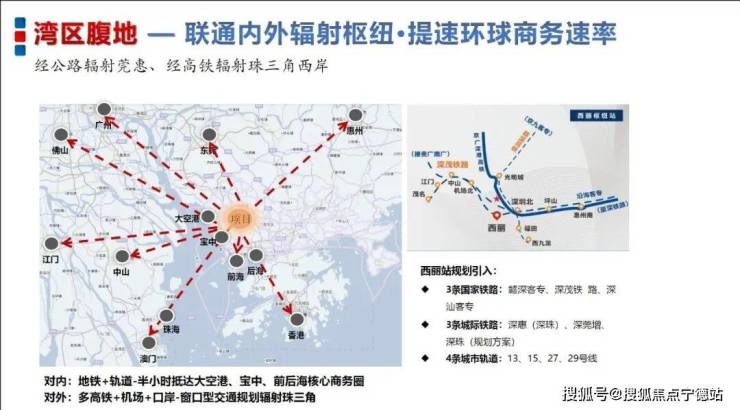 【湾区枢纽中心,五维一体交通】:海陆空铁轨五维综合交通, 30 分钟可接驳各大交通要点,联动湾区核心。