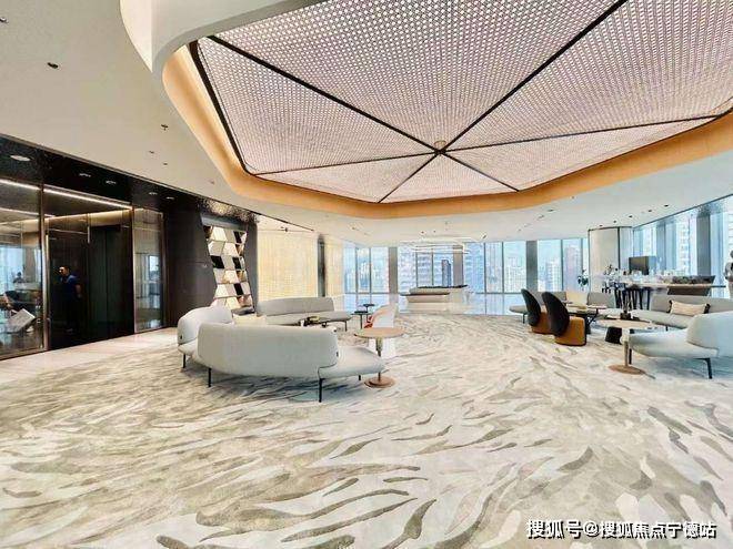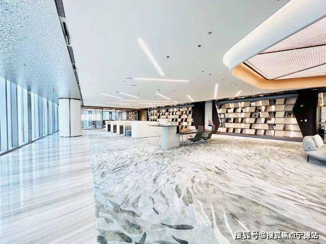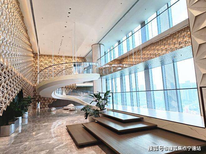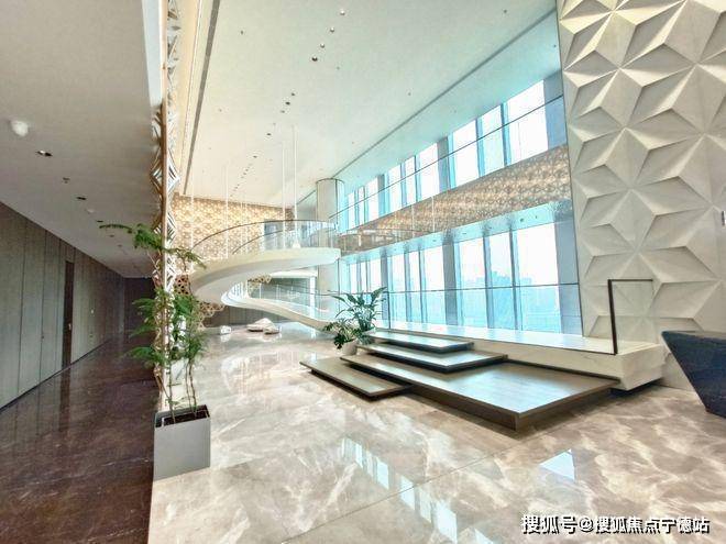 首层大堂:首层主大堂三层挑高,约13.8米,地面铺设大理石,配以铝板及不锈钢天花